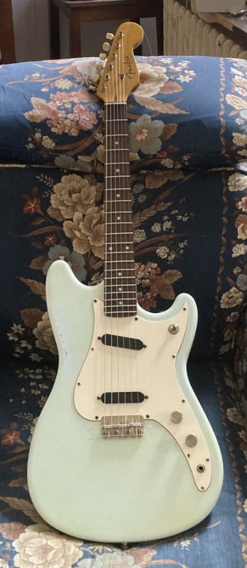 i did get the replacement pickguard for the Duo Sonic from Pickguardian and it's perfect. i sent in the old guard and a tracing with the pickups repositioned to 50s spec using a 50s reissue guard that didn't fit but had the pickups in the right places. it literally snapped into place between the neck heel and the bridge and lays perfectly flat. he made a 3-layer guard because i guess that's standard rather than the one-layer white that's vintage-correct (my fault for not specifying) but i rather like the added bit of visual definition the black layer provides. i had to go after the pickup cavities with the Dremel, but everything worked. the re-positioning of the pickups made it 400% better; the bridge has the kind of SNAP you expect from a Fender now, and the re-angled neck pickup seems both warmer and more articulate. i wish i'd gotten it together sooner...i always liked it, but now it's hard to put down, moreso because it's so tiny and weighs so little.