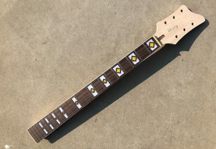 i've been trawling Temu for passable guitar cases and other doo-dads and came across this item. i saw a used National guitar neck with this inlay awhile back, but it was way more than i was willing to spend (there was also a great Kay neck, but IIRC the two necks were 20 and 19 frets respectively and i don't need any more 20-fret electrics). this, on the other hand, is about $200. i really, really don't need a 24.75" scale 24-fret neck, but this is so boss it's very hard to resist. i guess the big question is, what kind of body would you put it on? the obvious answer would be something in a 21st-century Supro stylie, but it's quite the open question whether anything available would work. possibly the best match would be something in an old Japanese body where you could place the bridge anywhere you wanted. it's quite possible that i'd chop off the fingerboard extension if need be. hopefully i'll come to my senses before digging myself into yet another project.