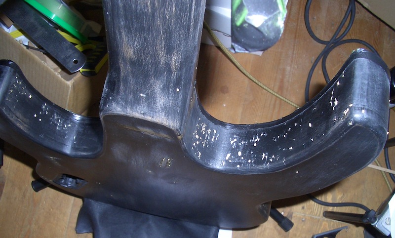 Since then I've bought two more cans of black nitro (just to be on the safe side) and have gone back to filling holes with the good old sawdust & glue combination along with a lot more sanding:
