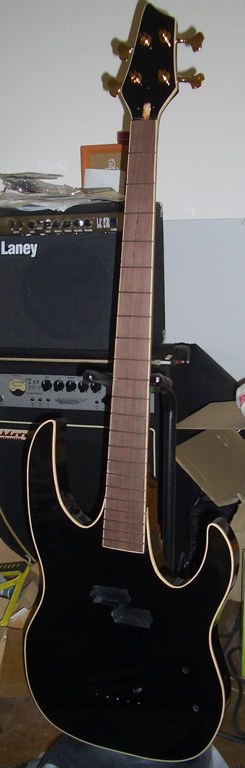 The fretboard also no longer needs any protection, so this is what the bass looks like right now (click for bigger):