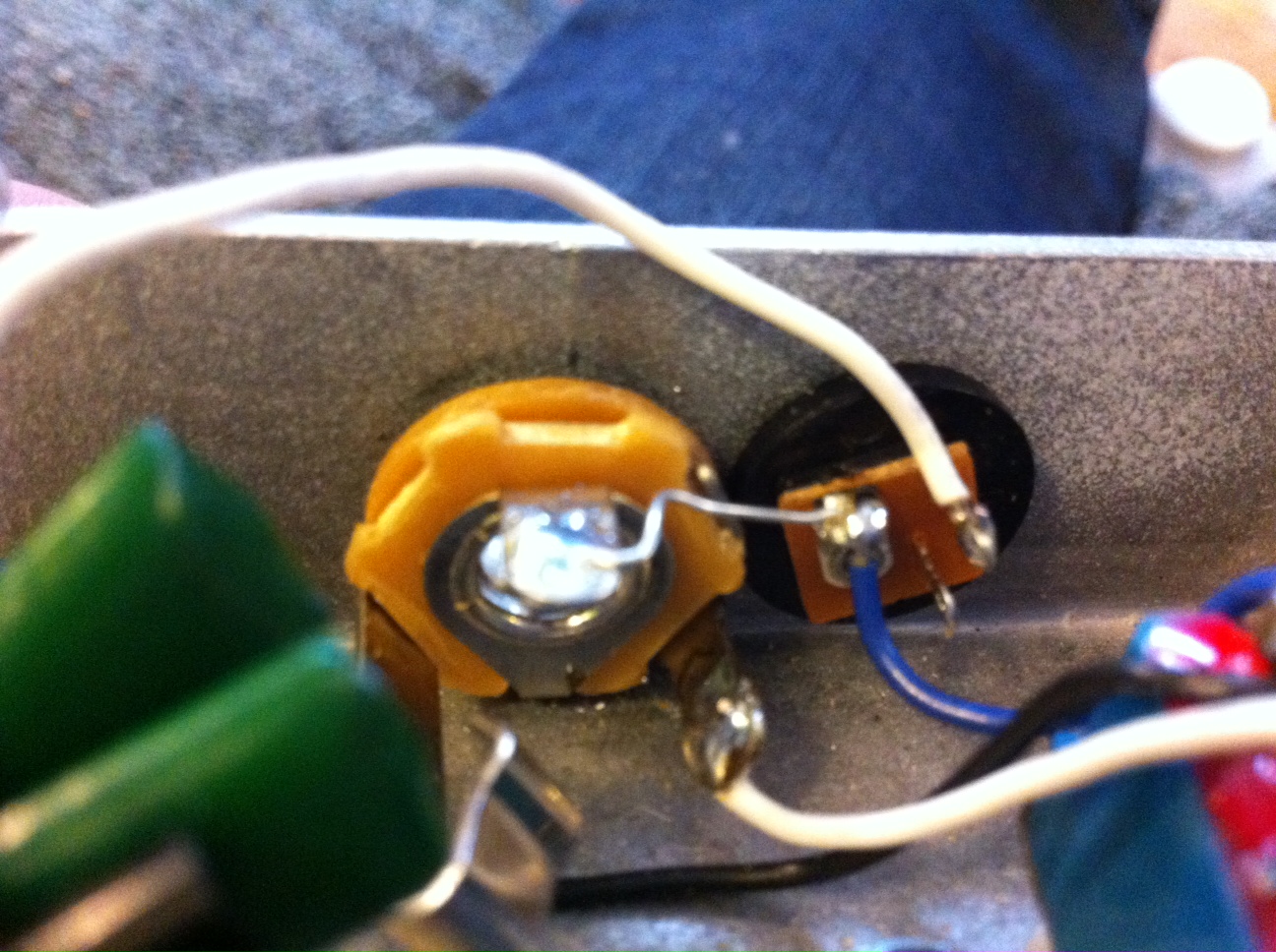 bigmufffuzzwizz wrote:I circled what I'm talking about. Green is the lead connecting Output jack sleeve to Dc jack Gnd lug. Red is Output jack tip connecting to what looks like Dc jack 9v+ main lug. If that's what you did clip it out, could be what's causing your effect not to work. Everything else looks correct including how you've wired the volume pot.