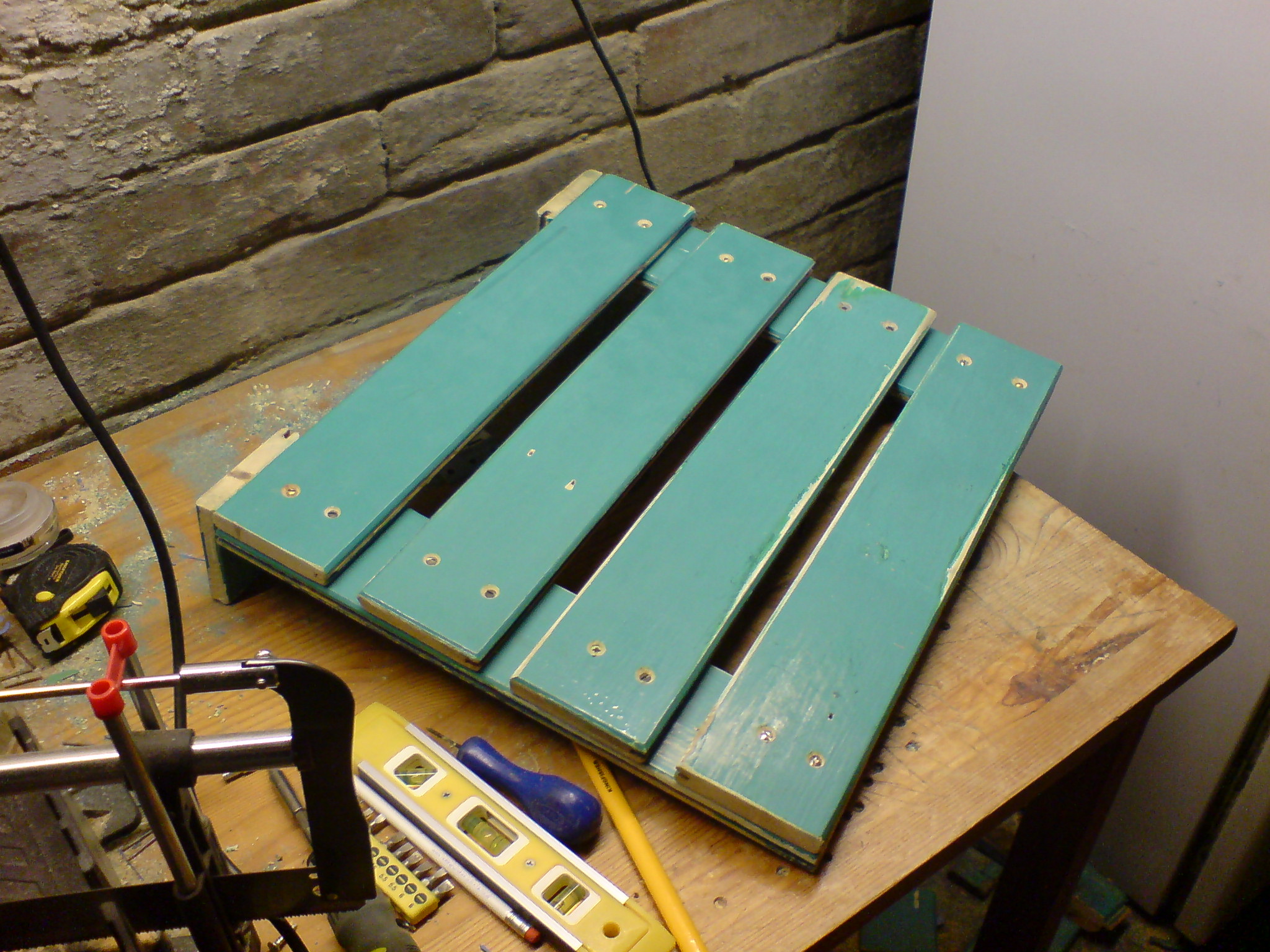Get two fence hinges and remove the nails holding one of the long side panels on. Bam, instant board. You can add two more hinges if you wanna keep the panel as a closable shelf, or just ditch it entirely. Cut holes in the sides for cables and yr good to go.
