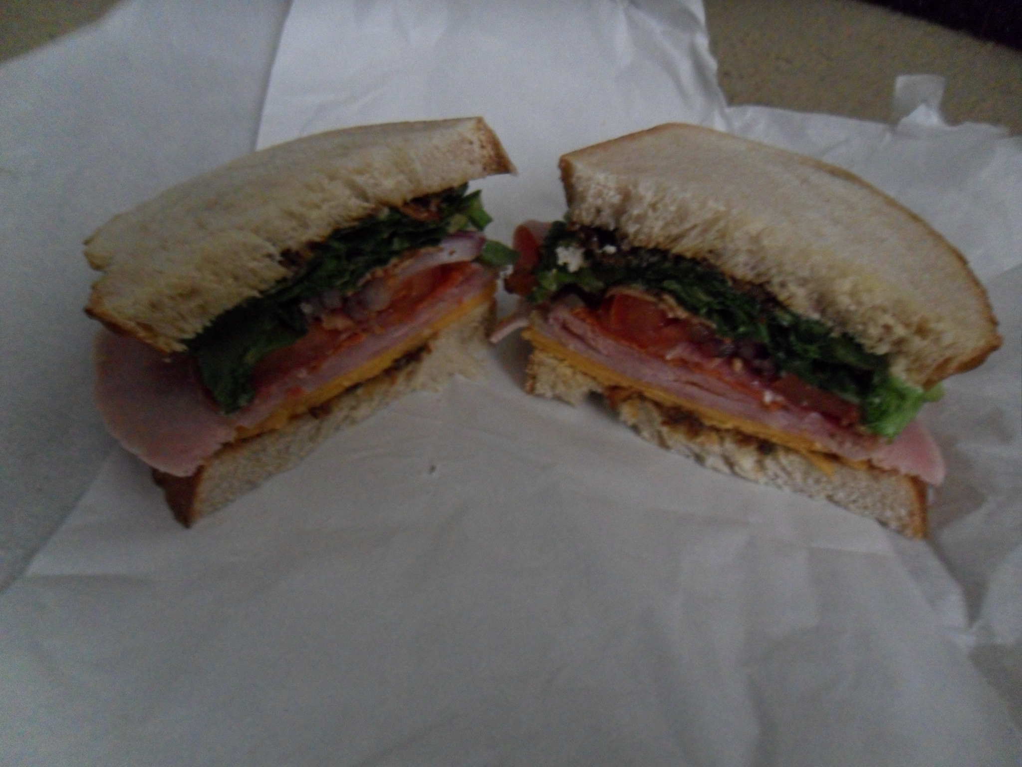 Got this from the new deli in the gas station... It's called the Whole Hog and has sourdough, cheddar, lettuce, tomato, red onion, ham, salami, peperoni, bacon and BACON JAM... Not sure what's in the bacon jam but it rules and you can get it on anything... It's kinda sweet but smokey and has finely chopped bacon bits... mmmmmmmmmmmmmmm... :snax: