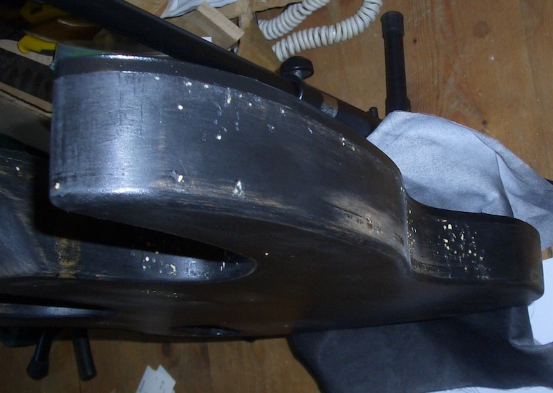 Since then I've bought two more cans of black nitro (just to be on the safe side) and have gone back to filling holes with the good old sawdust & glue combination along with a lot more sanding: