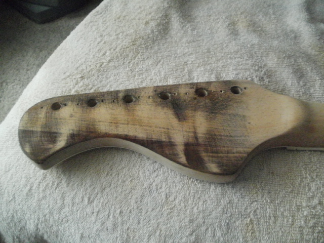 the back of the headstock after a bit of sanding with 220 and the sanding block.