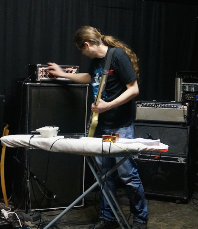 When I would do power electronics sets years back I refused to go through the PA most of the time. I instead went through a Peavey 1820 cab, a Peavey 120w Rockmaster Head, and an Acoustic B200H head. It was terrifying.