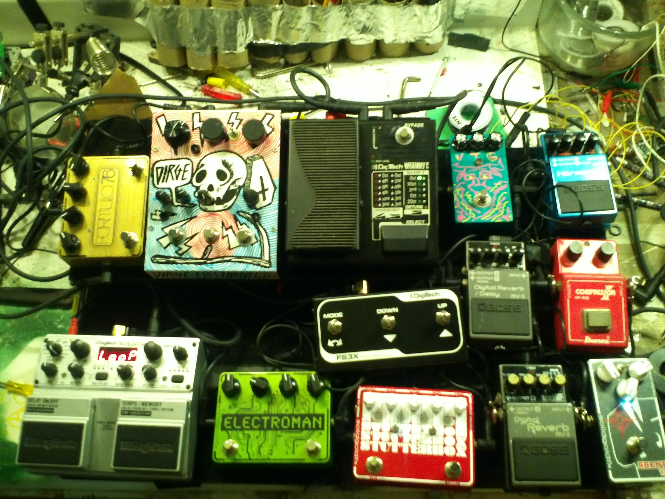 Tore my board apart because everything was pissing me off. Proceeded to do some Drop A droning with my power tubes roaring and this set up here. Was quite enjoyable.
