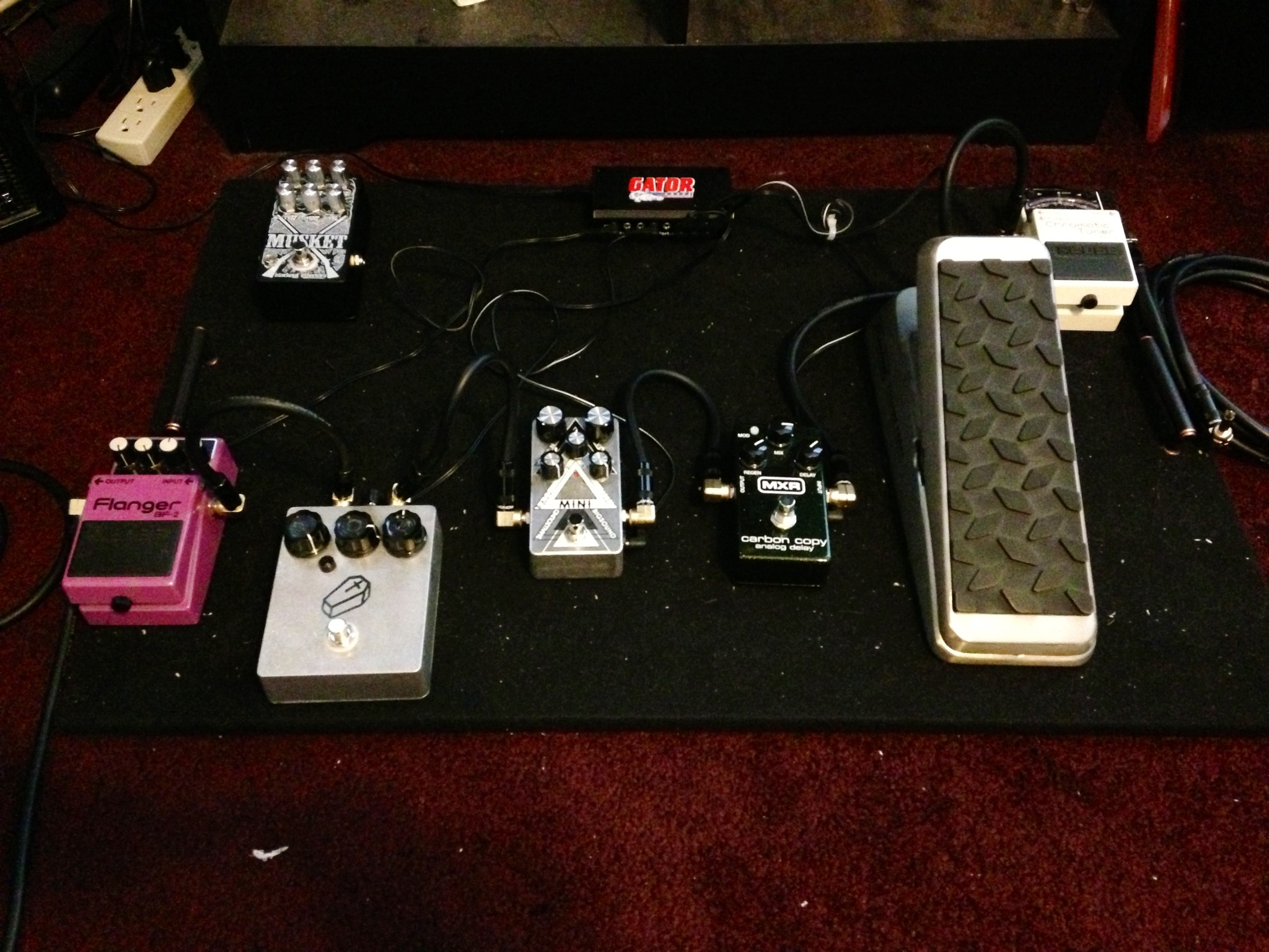This is the opposite of Feng Shui. And also not quite a pedalboard yet.