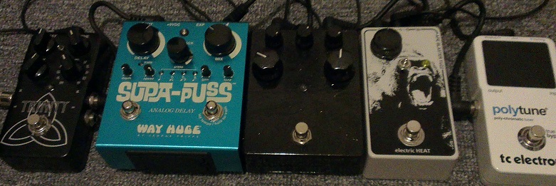 Swollen pickle, Roland bee baa, various muffs, lovetone cheeses, fuzz factory, etc