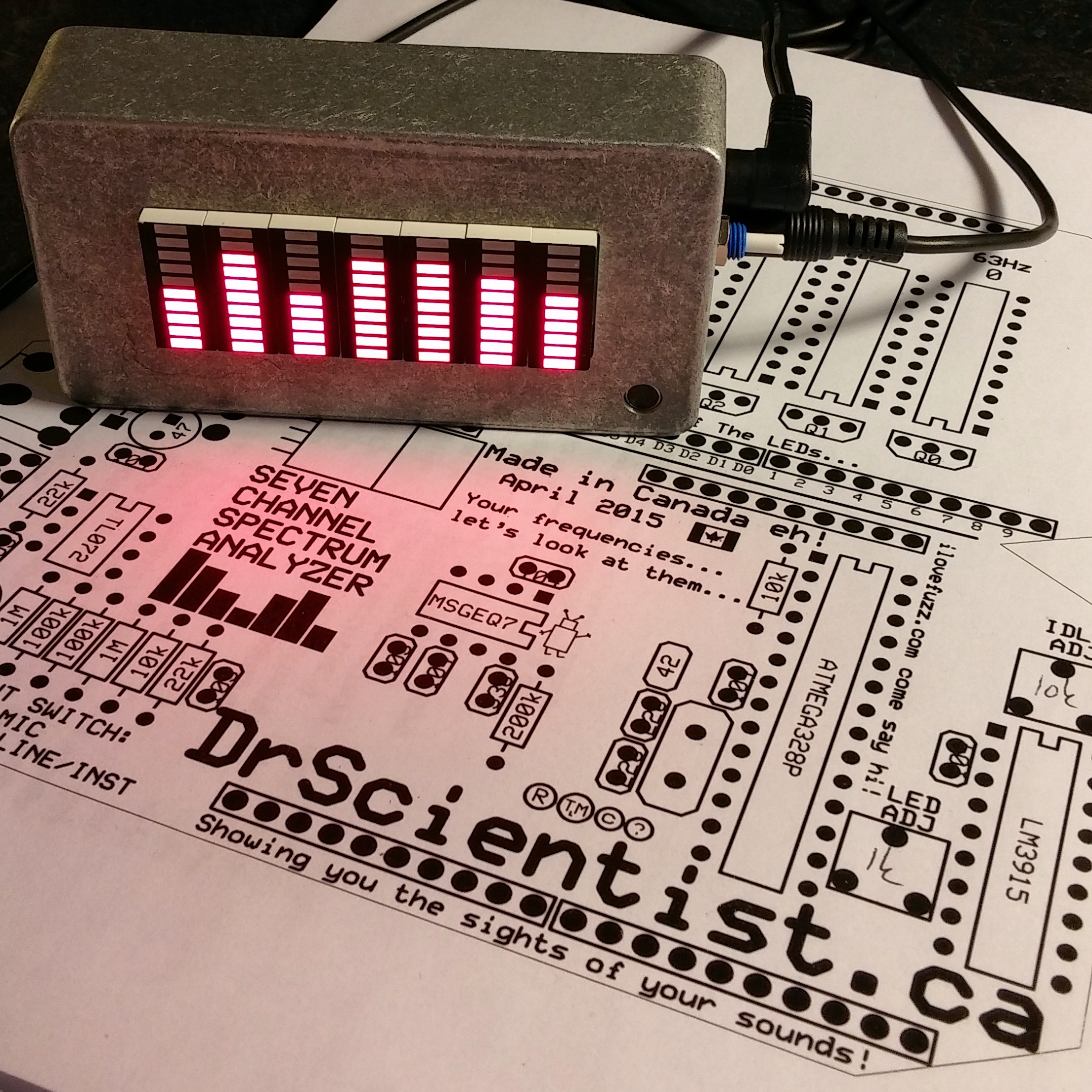 So here's what I'm thinking... I could use a bit of help to round up the funds to make these badboys... they're made out of parts I don't normally stock so I need to buy a lot of stuff at once to get these going. I've been doing up the costs and all that stuff and I think these will have to have an MSRP of $225, that's the price in store. I agree, that seems pricey for a doodad that you just look at but it's made out of expensive stuff and it takes a long time to build one. The price will also include everything you need to use it right out of the box though.. a good power supply, 2 x barrel connectors for your pedal board, and 2 x audio cables for your device/computer/stereo. Plus the usual lifetime warranty and some stickers and a pick. The production ones will be in red, it's the only colour of bar graphs that are readily available and a decent price.