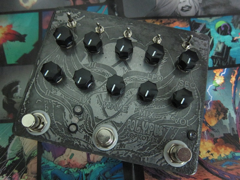 Here it is the polypus supreme, it has a 5 step sequencer, where each step is a preset rate or tap ratio multiplier, so you can create some rhythmic patterns. The sequence length can be set to 3/4/5 steps and it could be synced to the tap (it will be always advancing to the next step, based on rate set by your tap or it will only advance when you press the middle footswitch), a reset toggle allows to reset the sequencer in bypass to step 1, so when it's on it will start from step 1 or not. Sequencer and LFO outputs so you can sync other devices.