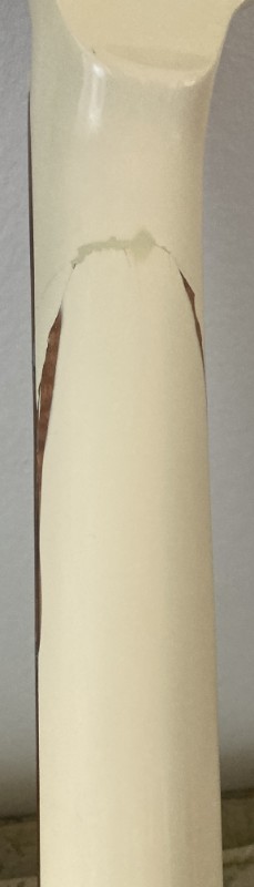 i’ll probably still use some CA for e.g. filling the areas where i sanded down the cracks in the original finish for contour. and i might try tinting the white CA to try and match the original finish. but i suspect that the end game here will probably involve acrylic Vintage White paint unless i match colors really well and the tinted CA suffices as filler. and i expect at least one of those conditions will not be met.