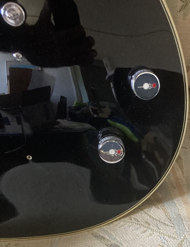 i spent most of a day working my way through problems that cropped up with various guitars since the big jobs are kind of off the table for the moment. i first started working on the Eastwood Wandré, trying to optimize the pickups. i found a setting with both pickups backed off where they contrasted with each other less, but it was far too quiet when compared to the Strat which is in rough balance with the majority of the guitars so i cranked them back up. i had to pull the neck pickup and shorten the springs because they were crammed against the pickguard. i found that with the volume rolled off about 30% the pickups sound more like each other so that’s an alternative sound. the Russian Big Muff knobs are great compared to the fairly dull stock knobs. i have a alternate toggle switch knob coming that has more personality.