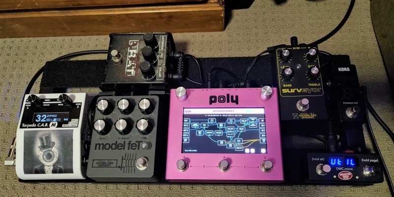 The thing about that board, is the very best sound you can get out of it is when everything is on. I was using the bitquest for delay and sweeping the synths with all that fuzz (maestro is brassmaster tribute, calamity is a muff, and the solarian is a dirty boost). Had a GREAT jam last night (so fun playing with people again).