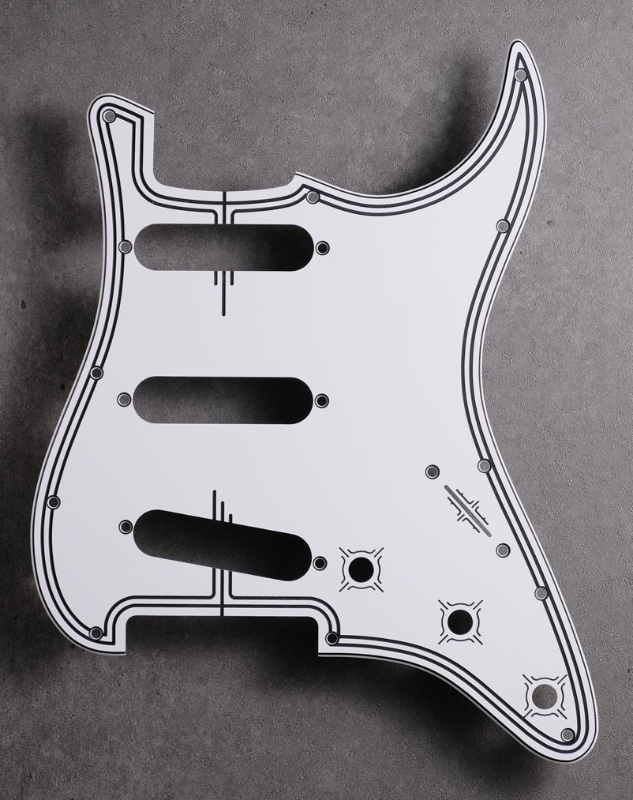 Pickguardian has a “White Pearl” acrylic single layer material that could be perfect for the green Strat. it’s much less jumbled than even nice MOTS. i still need to look into those deco guards.