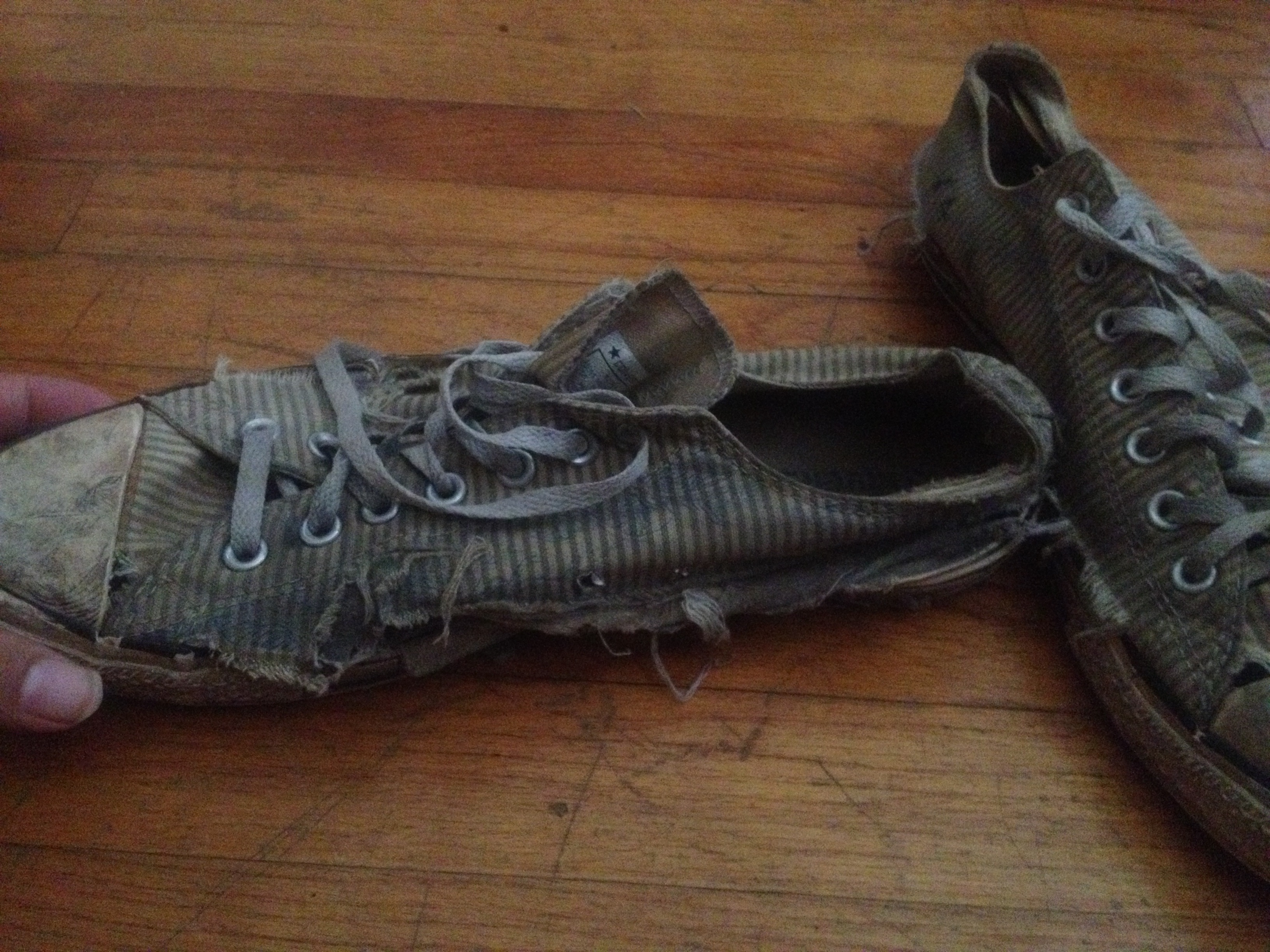 My most recent sneakers now have holes under the balls of both feet. I was going to go buy new sneakers, but I was like "man I gotta stop spending money." Then I found these in the garage and said fuck it. College freshman stylze.