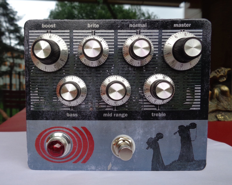 This could have fit into a smaller enclosure, but I wanted to put numbered knobs and a jewel light on there to give it an amp like appereance - and I like big pedals!