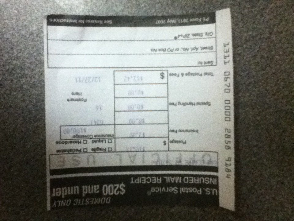 Here is the insurance tracking number. Thanks again man!