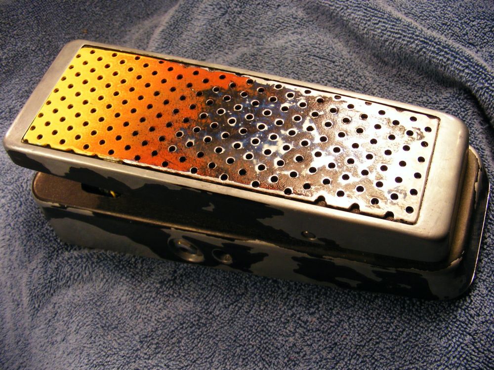 i had it in storage for a while , when i pulled it out i wanted to improve it a wee bit. it still has a deep soulful voice but i improved the overall sweep. it is set up pretty loud so i added an output vol under the treadle. when it is set full up it will drive a tube amp in a really pleasing way. there is a treble bleed path which actually makes the bassy setting still have some pick definition ( one of my trademarks) if it gets to be too much i can tell what to snip to get rid of that.