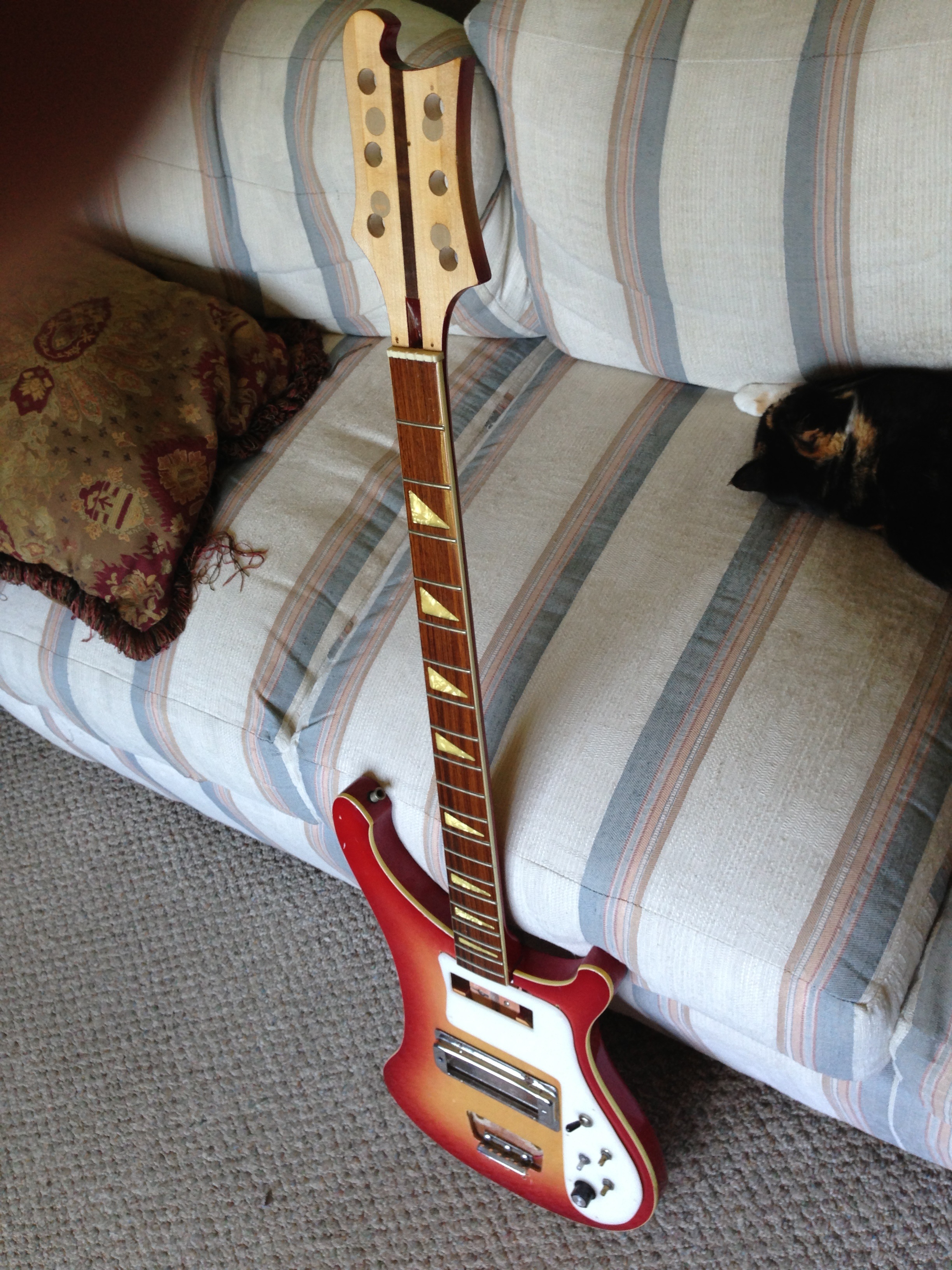 With that scale length the G-G tuning seems more realistic, provided you can find strings long enough. I have a few packets of Ernie Ball 13-72, I can measure them tomorrow if you'd like.TheStevenLasombras wrote:OK, dudes. Just came into possession of an old (Hondo?) Rickenbacker bass copy that I'm going to try and refinish. It was partially modded as a six-string but apparently never completed. Holes for tuning machines have been filled + redrilled, A six-string nut + tailpiece are attached. My idea is to refinish it myself, procure the missing parts, and then have a local dude I trust actually assemble the thing. But I'm playing more baritone than bass now, was curious about the possibility of setting it up as a baritone (B-B). Can a 33.5" scale bass work as a(n even-remotely-usable) baritone?I mean, I'll proceed with the refinishing project either way, just hoping this might be a cheap(er) way to quiet my "new baritone??" urges (for a while)...