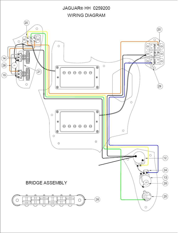 If the shielding isn't the culprit-go through the diagram and look for poorly marked bridges. Double check the bridges you have. I know when I did the wiring for a Marr style switching, the Fender wiring diagram had a couple bridges that were poorly marked. All other wires were colored and bold, these were skinny and black and looked more like part of the switch being illustrated than wiring. Investigate the pots and switches for correct operation. Somehow a pot on my jag died when I was rewiring it and it took a long time to figure that one out.