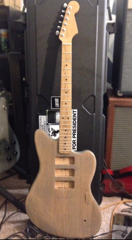 Got the body and the neck today. Got the body all sanded down and smooth and started staining. One coat of grey Minwax and then wiped. I think I'll leave it like this. Going to poly tomorrow