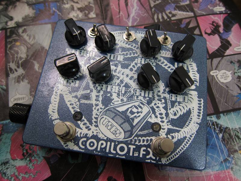 This is a trek with some variations, for the parallel dry it has a gain knob plus the vol, so you can get more sounds. The pulse width fuzz section is similar but has an extra range knob (so via the footswitch you can go from 2 settings on the fly), plus the oscillation section now has a 4 way rotary switch (the on the side) that turns off the osc and the other 3 fine tune the range of the oscillation so you can get the high pitches plus the low tumbling pulses, the osc knob fine tunes the pitch, and 2 toggles changes the shape and adds the modulation (from the cv jack). There's an extra knob (the one on the back around the in/out/power jacks) that will allow to do some tremolo chops to the pulse width fuzz section. CV/Expression input, ideally you will use the cv out of the broadcast (and will still have the exp out and the knobs to connect other device) or 0-5 CV signal, you can use an expression pedal but a lfo will give you a lot more fun.