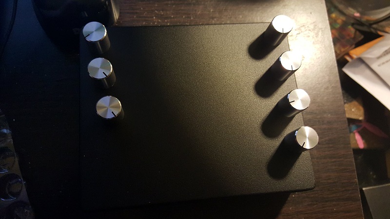 Yeah, two footswitches. If I go with the lines (which is what I'm leaning towards myself), I'm considering maybe putting a metal rail between the footswitch and the knobs on the right. Kind of like those cheap Aroma pedals