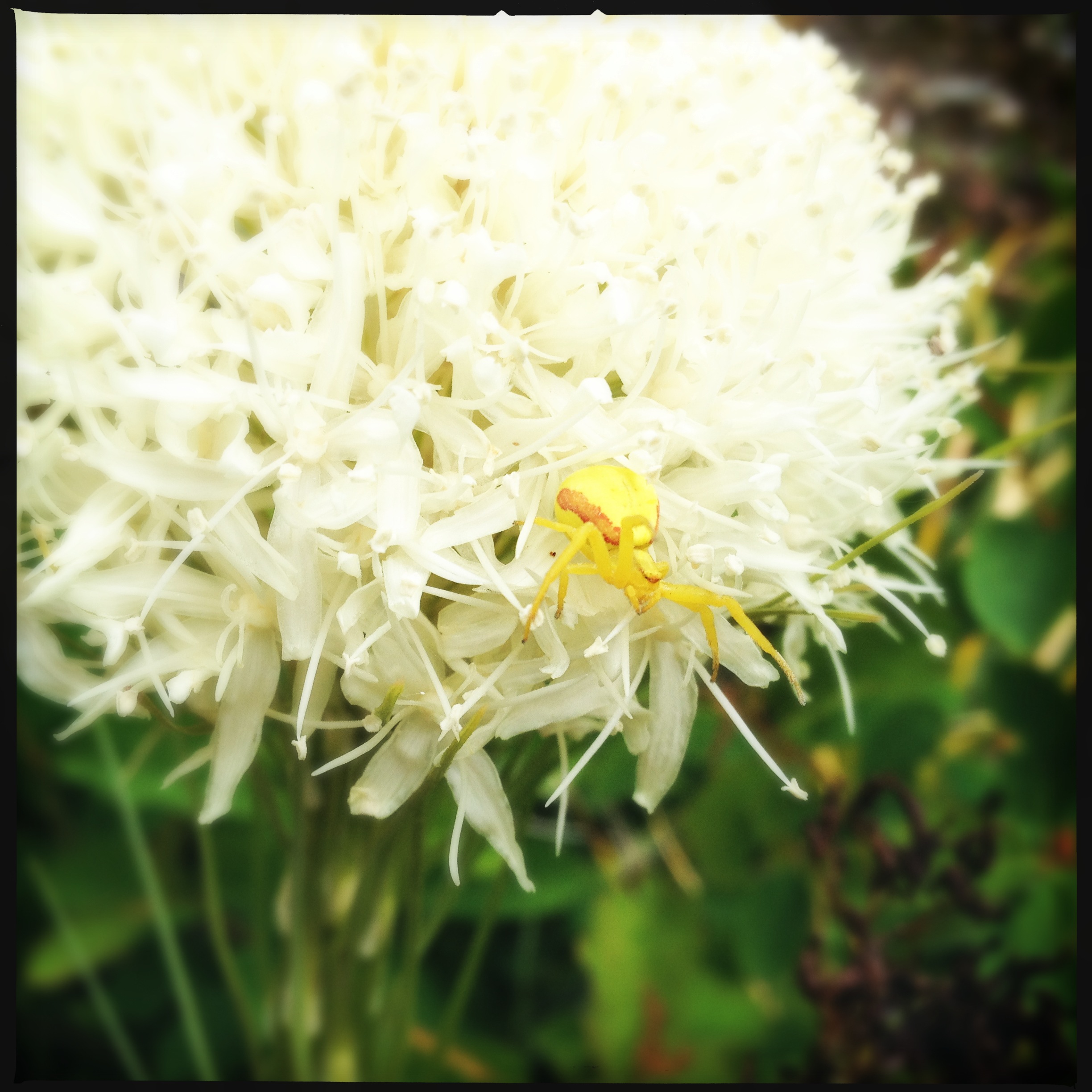 Oh yeah, I've been meaning to post this one. I was outside playing with my son about a week ago, and he found this guy clinging to his beach ball. He was about 3" long including legs.