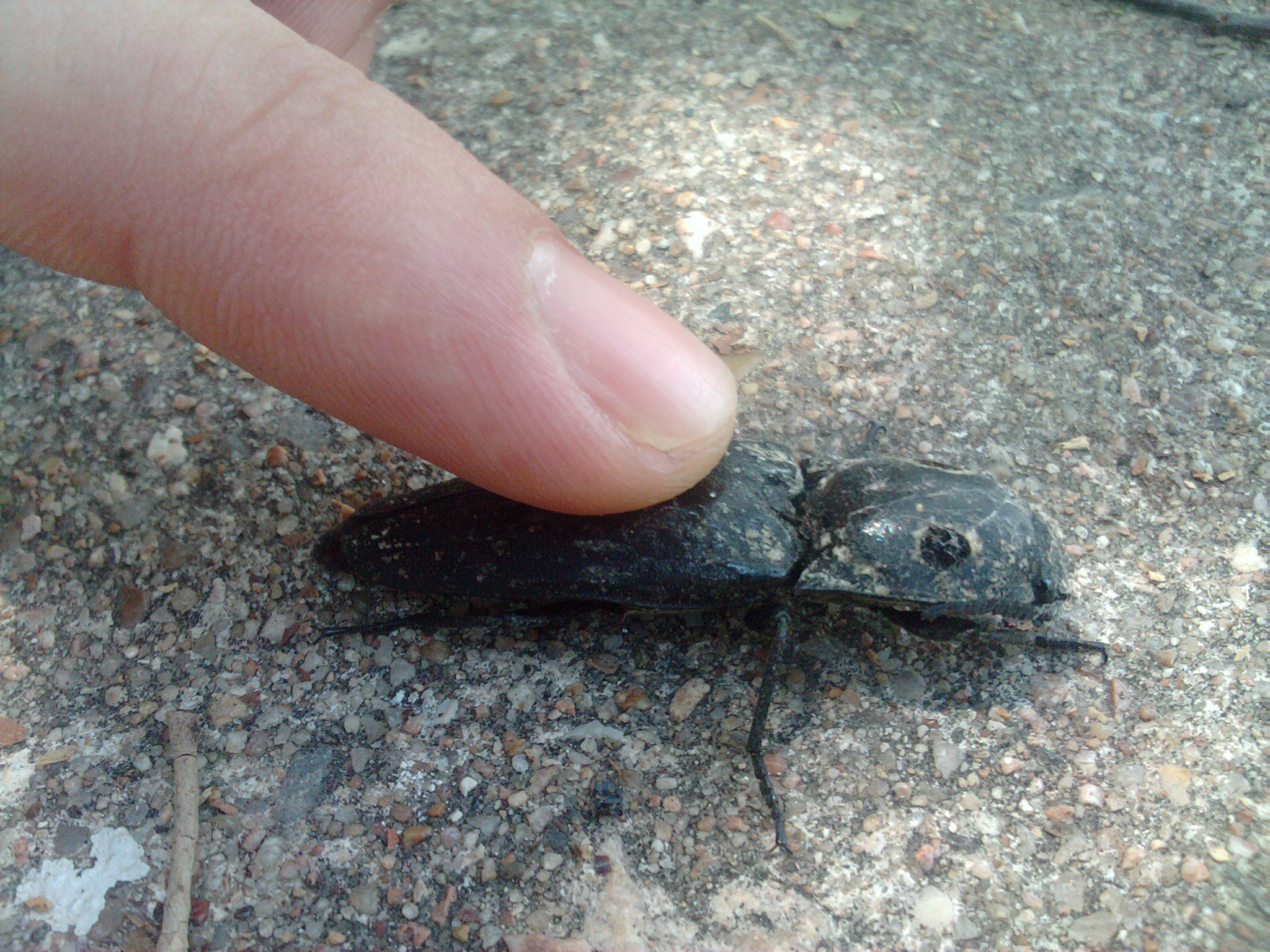 Found this Elateridae (clicker beetle) today in my yard. I see small ones pretty often (1/2"), but I haven't seen one this size in years. When I was a kid we'd put the big ones on their backs and they would pop above our heads. This one played dead when I was holding it.