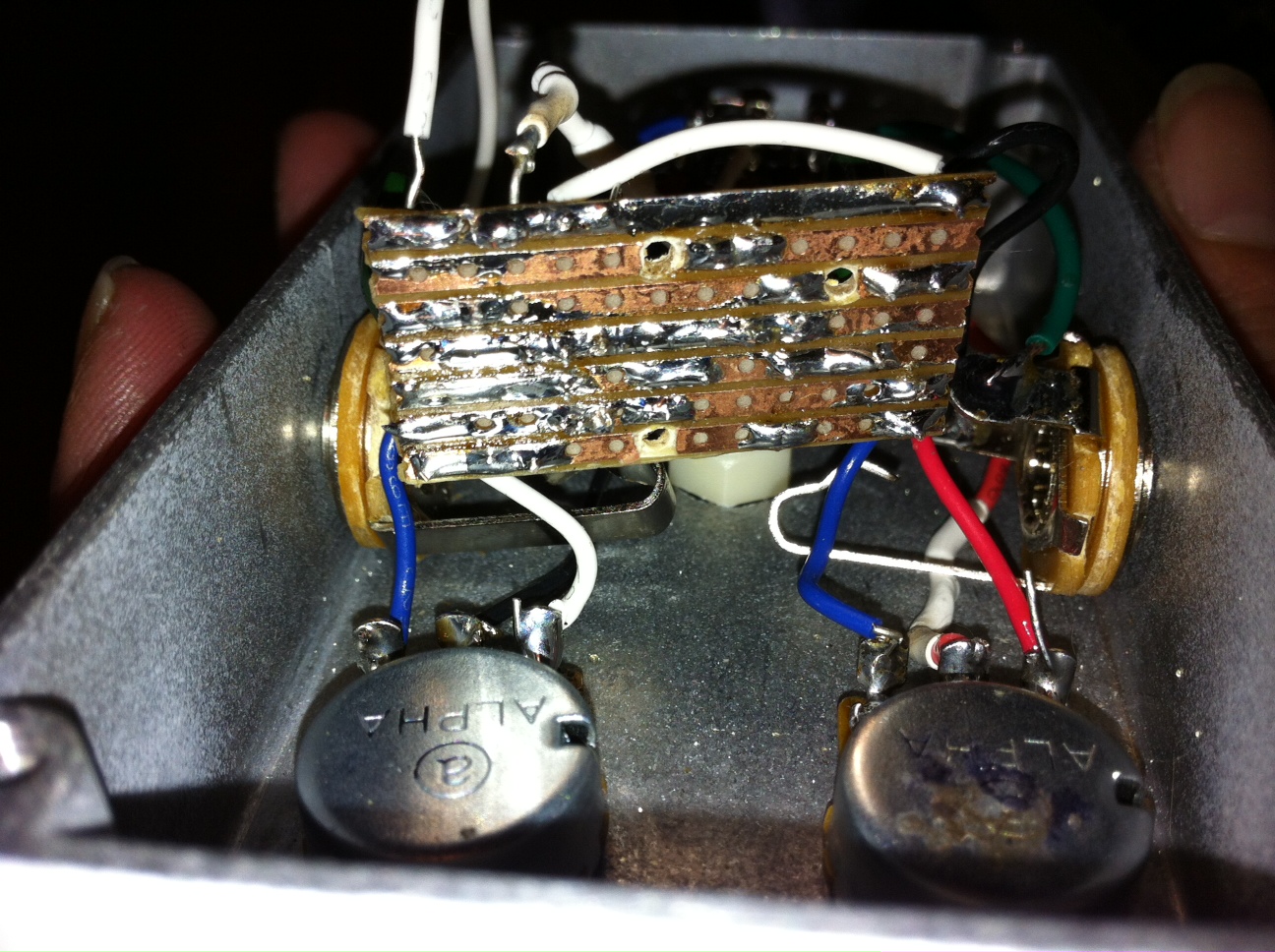 i just used hookup wire and connected the ground lug from the power jack to the sleeve on the output jack.bigmufffuzzwizz wrote:It's hard to tell but it looks like there is a jumper lead connecting the 9v power lug to the out jack lug. Is that correct?