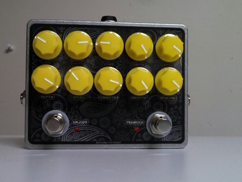 Just to be clear, and not take credit for something I didn't do, I came up with the idea of wanting a Fuzz Factory with a tremolo built in, but my friend Bugg was the one that suggested the Tremulus Lune for that part. Bugg built it at his house. I just play the thing:)