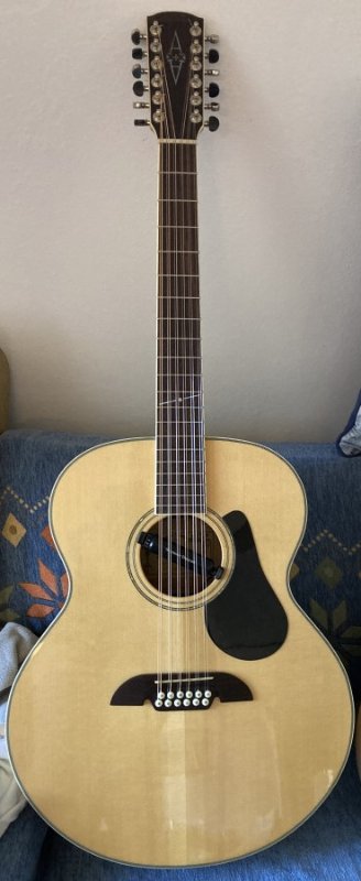 huge deal. it's gone from a curiosity to a tool. i love it when the result of all my futzing about is an actual improvement in the functionality. i'm chuffed today about the 12-string which i used for a long looping session yesterday with the full system where i got all kinds of lovely stuff that doesn't even necessarily sound like a 12er at all. the doubled courses in particular do wonderful atmospheric keyboardy things through the modulation and multiple reverb units. did i mention that i rotated the pickup to a diagonal orientation because it was very bass-heavy/treble-deficient? it helped a lot. now i understand why people started angling pickups. the only drawback is that the pickup really needs a preamp to get to unity gain with a typical electric guitar. i have the Mellowtone "party favor" Hi 5 as a clean boost at the start of the FEB and use it to knock the output level up enough that it'll kick open the gate on the Micro Tron. this also helps out the Duo Sonic and is generally handy for matching levels, bringing up quiet stuff like glissando guitar and bass tones through the Octave Multiplexer that needs a kick. the 12-string is one of my best success stories in Mod World. gained a ton of functionality, i like the sound better than a typical electric 12 because it benefits from the jumbo body and is less shrill, it works better, looks better, and the whole schmeer was way cheaper than buying an electric 12. and let's not understate how great it is to tune it with an electronic tuner. i've been kind of depressed lately, so it's nice to look at it and say "that worked."