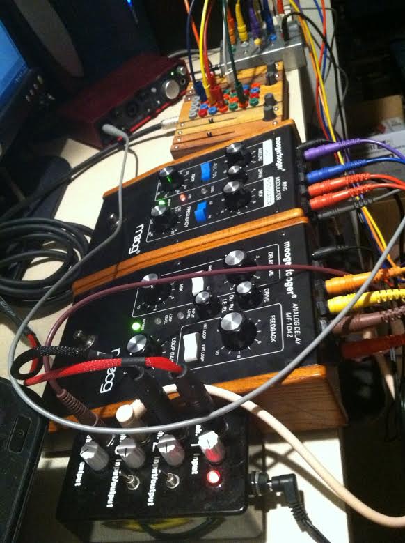 I've realized that I have the most fun, and am the most productive, with simple setups like this. Just some øzcilooting f00z and an analogue delay, and I'm a happy noisemaker. :joy: