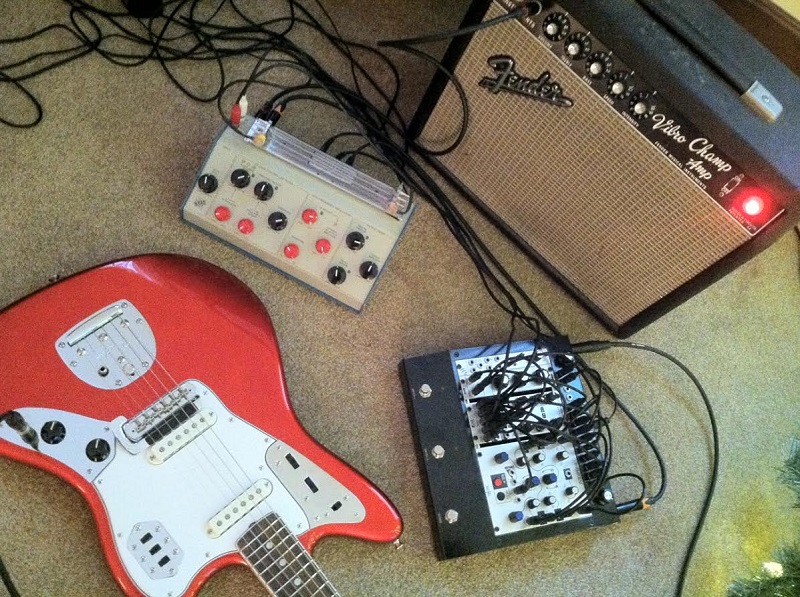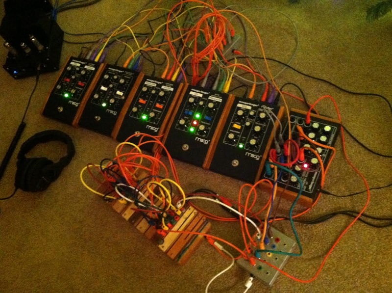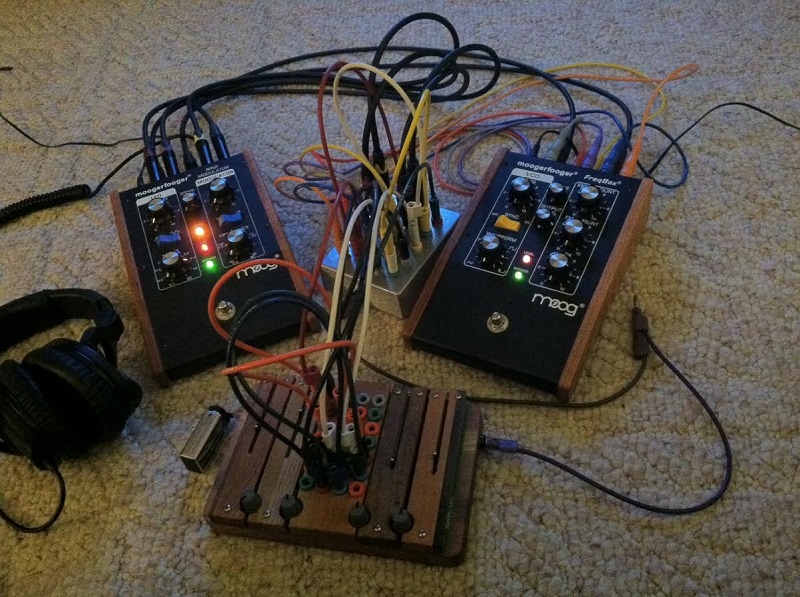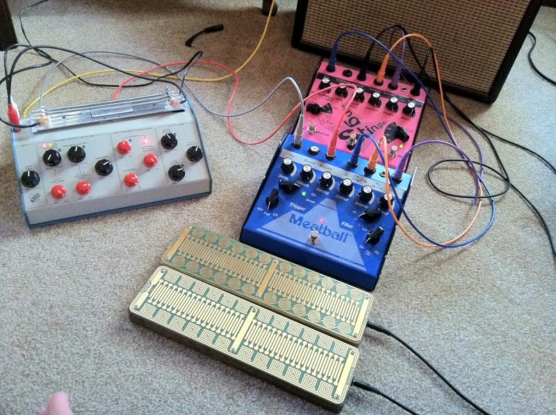 running oscillators from Tetrax into Meatball with Ring Stinger in f/x loop, another oscillator from Tetrax to Carrier In > Doppleganger > Wobulator stereo out to Cocoquantus. Koma Kommanders and Expression pedals abound.
