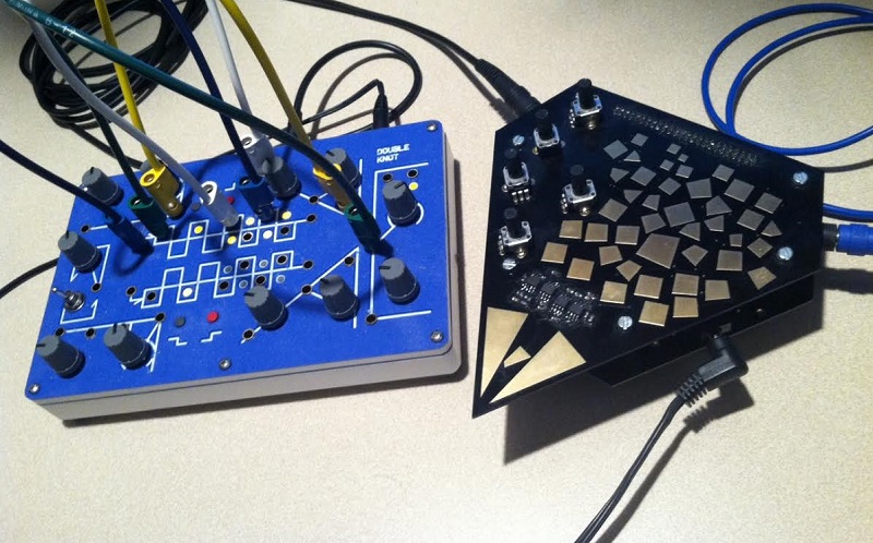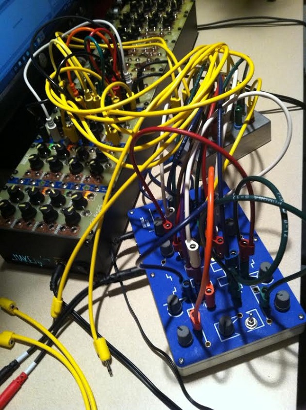 Patched Lorre-Mill Double Knot R2R and Envelopers to modulate the four oscillators of an Ieaskul F Mobenthey Fourses. Also tried using the Data outs to modulate, but more interesting results using the Data for Bounds inputs...All Fourses oscillators through their own low pass gate courtesy of Meng Qi dplpg all triggered by different Data outs from the Double Knot. Pretty good results patching the Audio out from Double Knot to modulate the Fourses too.