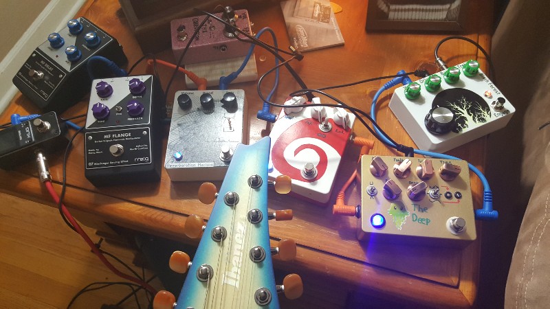 Black Forest into a Culture Jam delay with modulation into my trusty rebote 2.5 into reverberation machine into minifooger Flange... such great noises