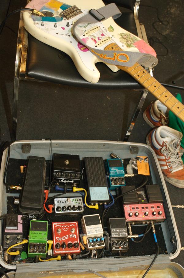 May have already been posted but on here is a walkthrough of Mogwai's current pedalboards. Some nice stuff on there but John Cummings' commentary doesn't give much away - "Wee tuner, wee EQ, wee tremolo, few distortions..."