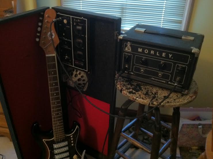 Morley EDL Electrostatic Delay Line Oil Can delay into Silvertone 1448 amp in case with teisco 4 pup guitar