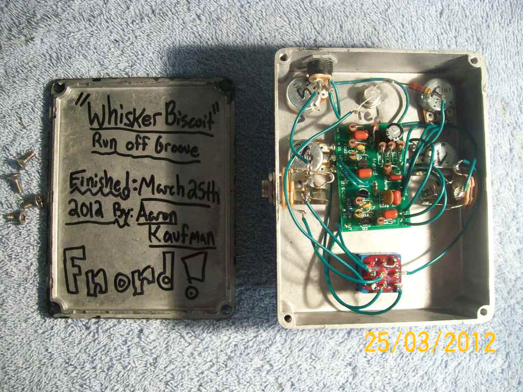 I'm really, REALLY digging the Whisker Biscuit. As with most fuzz pedals, my Squier J Mascis Jazzmaster loves this pedal. The Range on the Tone knob is incredible, and very useful in nearly all positions. Starts out fat and midrangey, ends up super-scooped on the other end. I've seen some posters asking about how to mod it for more output, but it seems to have plenty of output level for me. I'm running it at <50% on the Vol knob. It's Big-Muff-like, but sounds utterly different than my Little Big Muff. I like the contrasting tones between the two of them.
