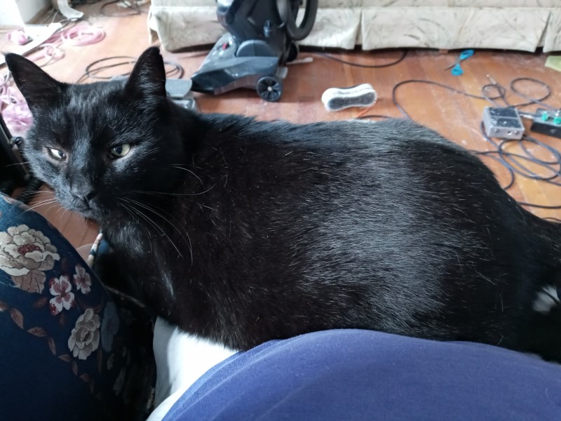 the positive side of all this upheaval is that it's gotten me to start playing more again. i hadn't hardly played in weeks, but recently got to the point i'd been waiting for where i just couldn't not do it any more. i've been going through everything as part of cleaning up the apartment, and thus have been cleaning and organizing my equipment. right now i'm doing maintenance/repair--a new tone pot here, bone saddle/nut/new tuners for the Epiphone FT-345 acoustic i've had since 1974 there--but am threatening to get back into guitar projects in a big way, having found all sorts of interesting parts on the interwebs. if i can find the old thread i *think* i had for projects in the olden days i'll add to it; otherwise a continuing projects page will start soon. and i adopted a new cat.